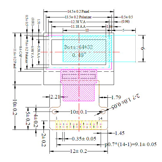 FPC pin脚:14pin(焊接式)