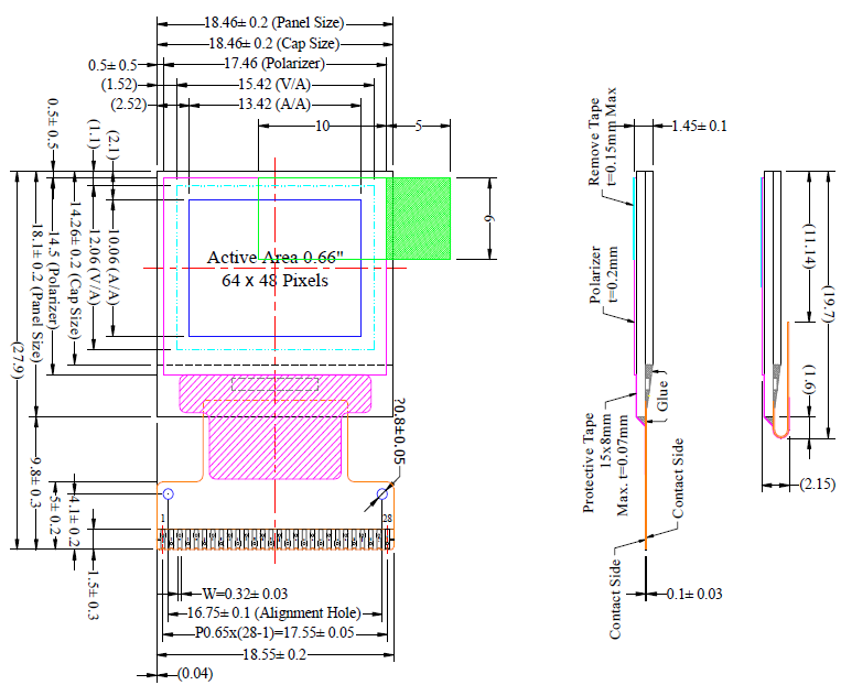 玻璃尺寸:14.46X18.1X1.4(mm)