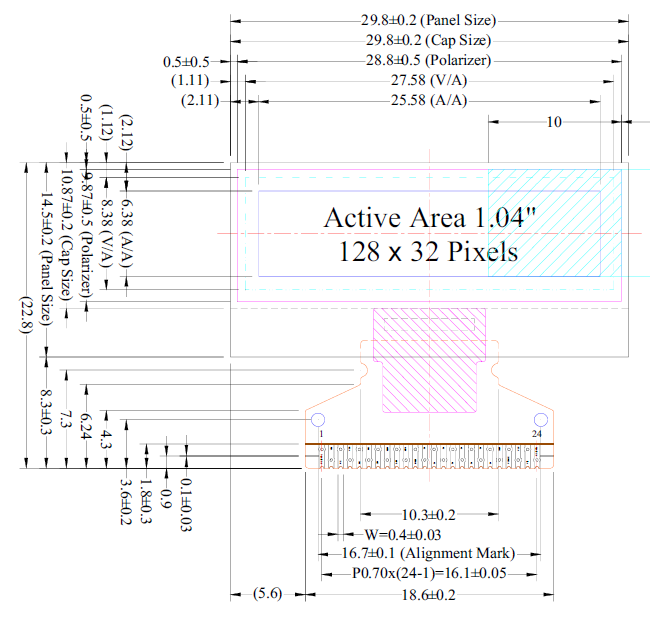 FPC pin脚:24pin(焊接式)