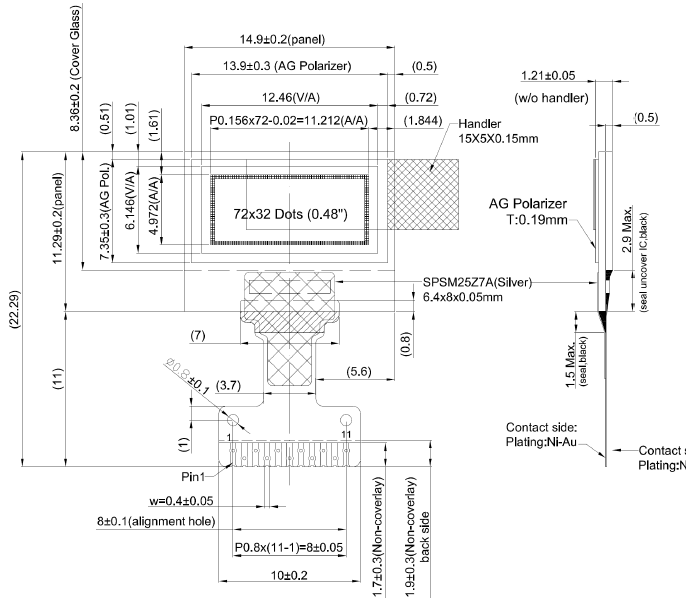 FPC pin脚:11pin(焊接式)