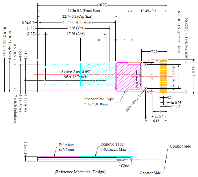 显示区尺寸:17.26X3.18(mm)