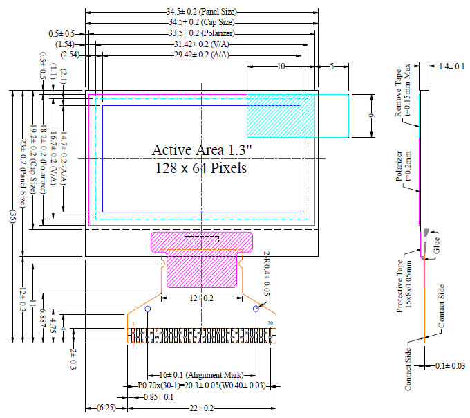显示区尺寸:29.42X14.7(mm)